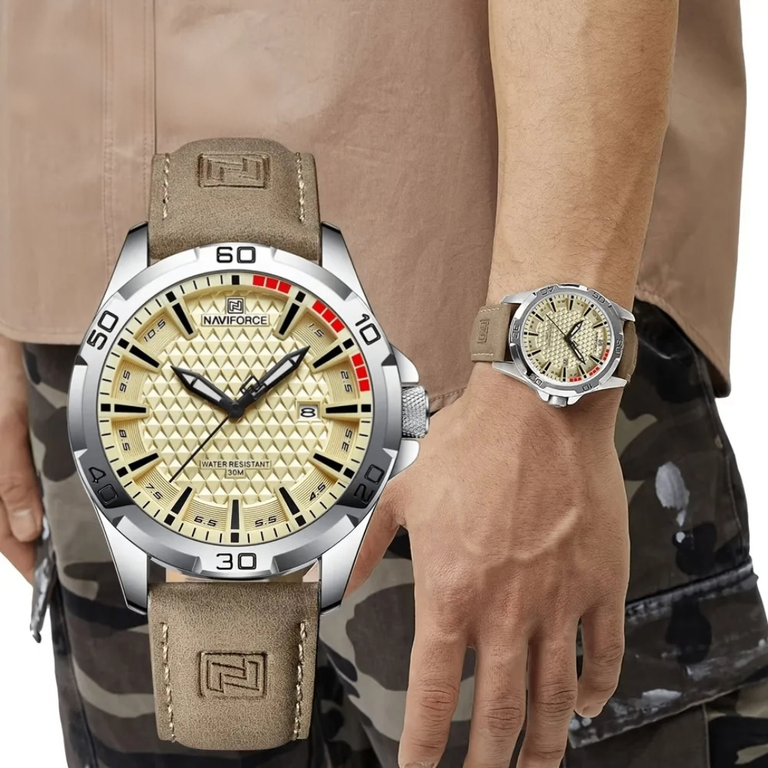 El Reloj Kraken Beige para hombre combina la elegancia de su pulsera de cuero con un diseño más agresivo y con carácter, logrando un equilibrio perfecto entre sofisticación y personalidad. Ideal para quienes buscan un reloj que destaque sin perder elegancia.